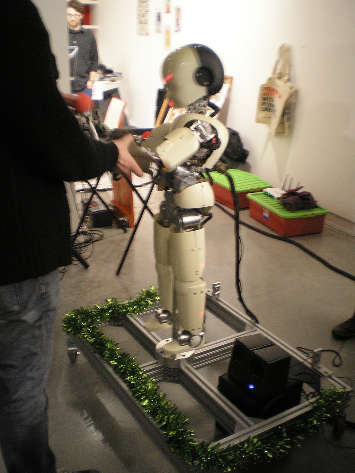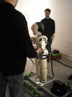 Esta (sim é uma robot, pelo menos a voz era feminina) falava, entre outras coisas dizia que queria mince pie e mulled wine. E também tentava agarrar uma bolo vermelha que lhe mostravam e fazia cara de chateada quando a enganavam muitas vezes.