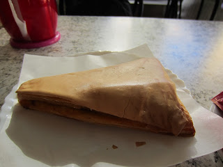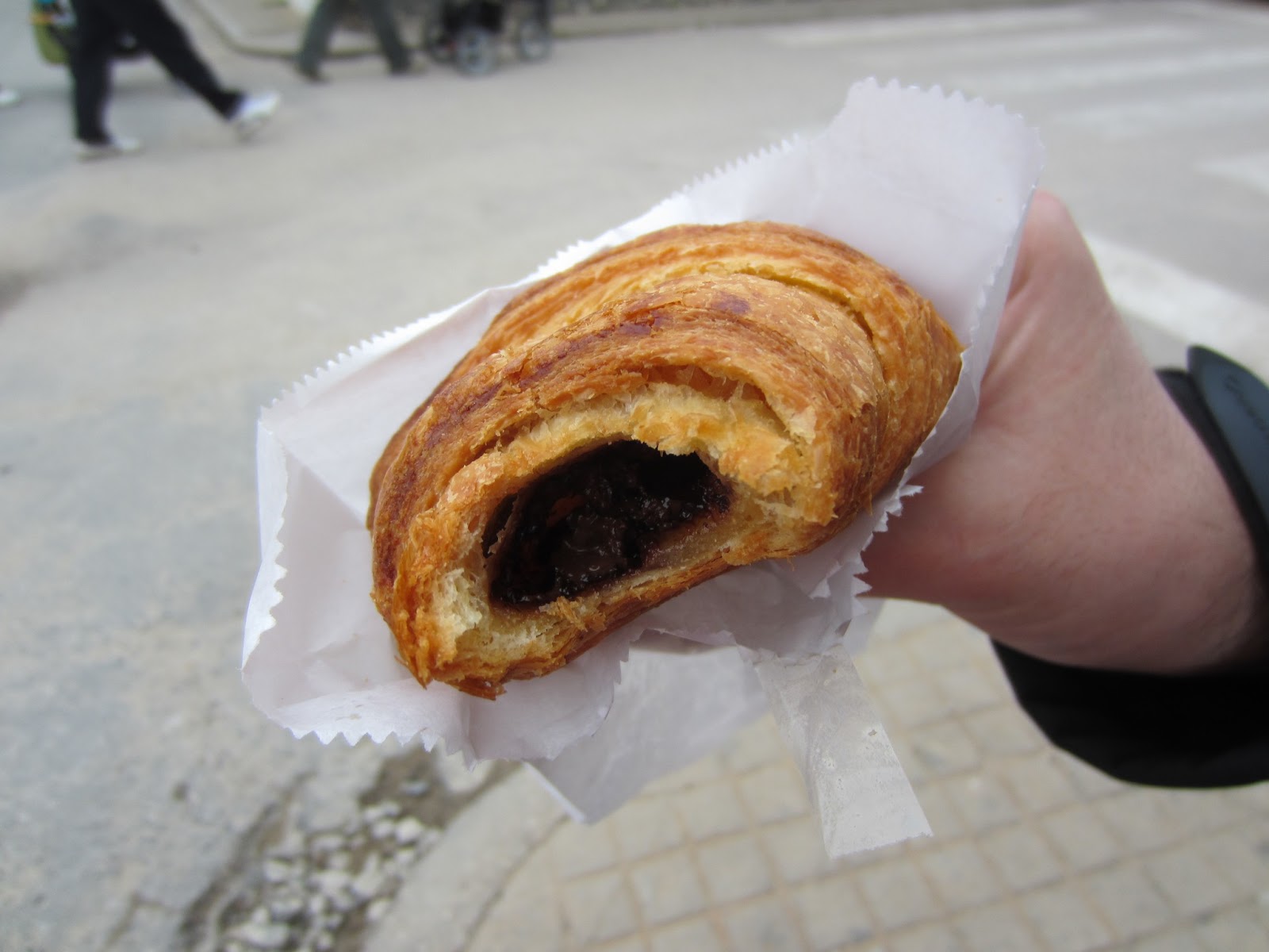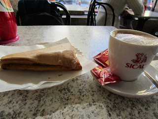Esta Páscoa que passou tive a oportunidade de ir até Milfontes e obviamente que ir lá e não ir à Mabi nunca poderia acontecer. Assim lá fomos (e o fomos não inclui a minha pobre irmã que assim não matou saudades da Mabi) comer um belo croissant de chocolate, quentinho que até queimava. Foi pena ter que pedir para levar pois aquilo estava a arrebentar pelas costuras e não havia sitio para sentar, mas tal como estava cheíssimo num momento no seguinte praticamente ficou vazio e assim lá fomos dividir um gelado de morango. Ai os croissants continuam tão maravilhosos como eu me lembrava!