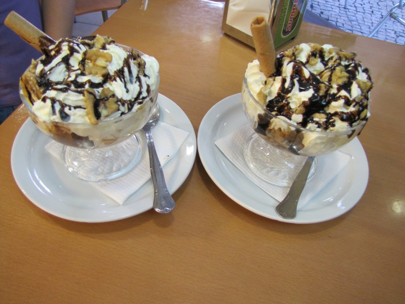 A sobremesa não estava incluída mas nós decidimos comer na mesma e pagámos à parte (pagamos bem por elas). Quanto aos nomes das sobremesas já não me lembro, sei que uma delas era tipo umas conchas de massa folhada recheadas de doce de ovos e o outro doce (muito enjoativo) tinha mel, frutos secos e especiarias.