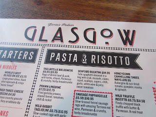 Em Glasgow mesmo no centro junto a vários pontos turísticos havia um restaurante de comida italiana do Jamie que se chamava Jamie's Bar. Antes de nos decidirmos a lá ir ainda pesquisamos na net a ver se valeria a pena lá ir. A maioria das críticas prendiam-se ao facto de as pessoas ficarem muito decepcionadas por não ser o Jamie Oliver a estar lá a cozinhar para elas, oh pobres criaturas ingénuas! Como é que há pessoas a achar que seria ele a estar lá a cozinhar, então ele tem dezenas de restaurantes como seria possível estar em todos eles? Aliás ele não está em nenhum, com a quantidade de programas que tem deve passar o dia a filmar programas ou então na cozinha de casa dele a experimentar novas receitas!