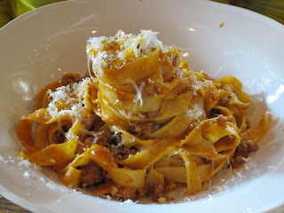 Para prato principal comemos "Tagliatelle Bolognese" e "Sausage Pappardelle" ambas as massas muito saborosas e se na foto pode parecer pouco, não era nada de pouco.