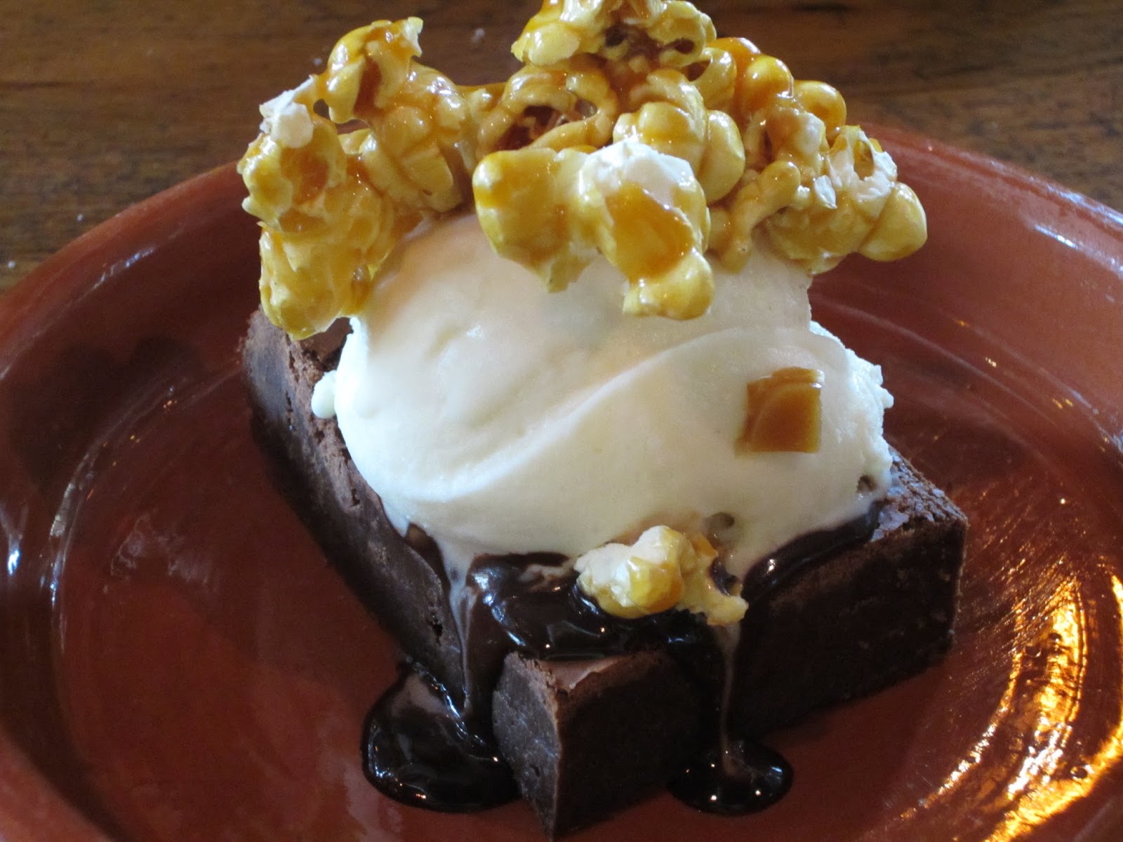 Mas o melhor mesmo foi a sobremesa era tão boa mas tão boa que só de pensar nela dá-me vontade de chorar com saudades... A sobremesa foi um maravilhoso brownie de chocolate com gelado de amaretto e pipocas caramelizadas, das 3 coisas nem sei qual a melhor, e as 3 em conjunto então certamente são uma das 7 maravilhas da doçaria!