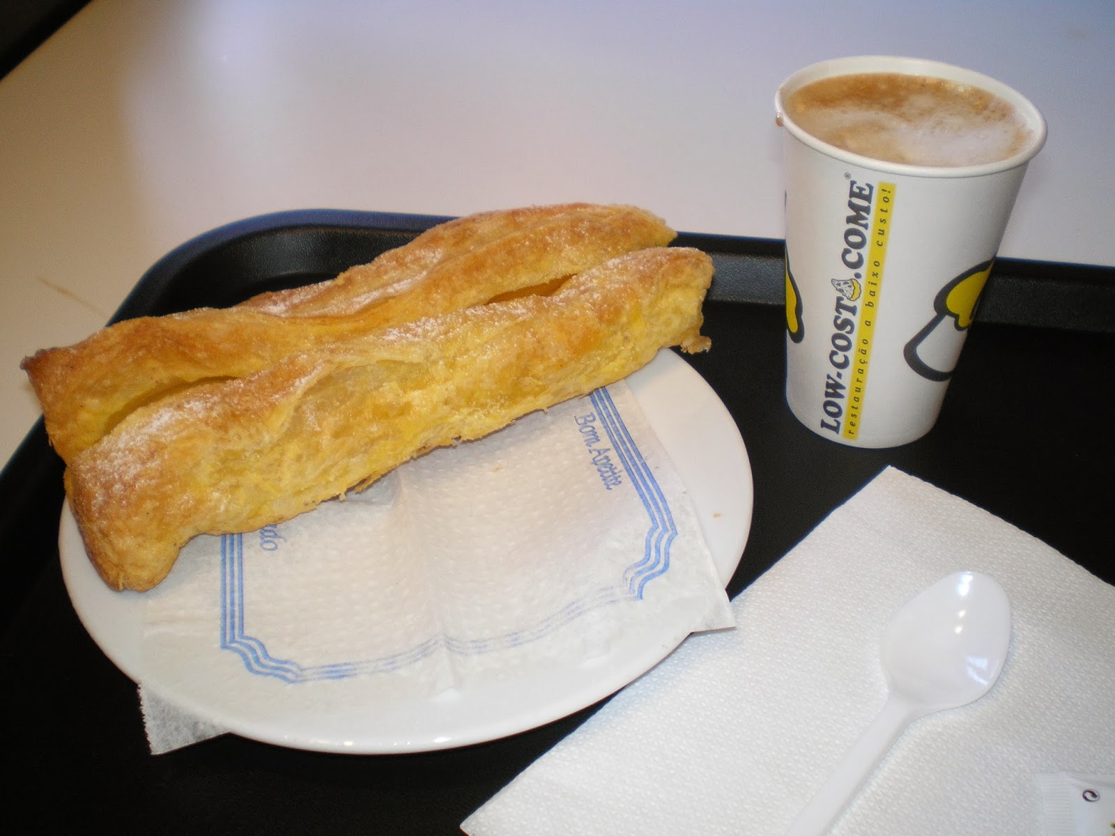 Já lá comi varias coisas uma meia de leite com um folhado recheado com doce de ovos (tipo de doce que por norma é sempre caro) que me custou 1.10€, e o bolo era mesmo bom. Comi também um croissant misto com uma meia de leite que me custou 1.60€, e que me soube mesmo bem. Entretanto já experimentei um pão com chouriço que custa 0.60€, o pão é bom mas chouriço não tinha lá muito. Também já experimentei um pão com manteiga que custou 0.30€ e o pão é muito bom.