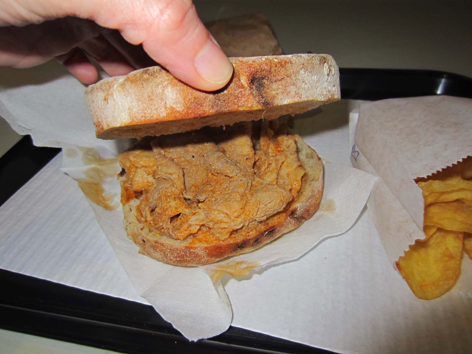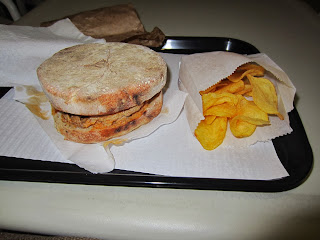 Abriu uma banca com produtos da Madeira no Mercado do Bom Sucesso e eu claro que tinha que lá ir experimentar qualquer coisa. Experimentei um menu de bifana em bolo do caco com batatas fritas que custa 4 euros se não estou em erro. Gostei bastante da bifana no bolo do caco, estava bem saborosa. Agora tenho que lá voltar para beber uma poncha que eu tanto gostei de beber quando estive na Madeira.