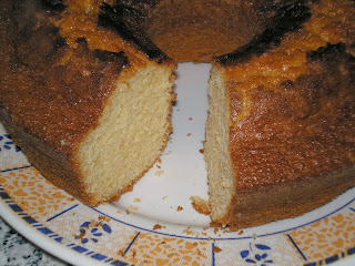 Sim, sim, não fiquem em dúvida as fotos são de bolos diferentes, em nenhum deles me lembrei de fotografar o processo de fazer o bolo, mas no primeiro que fiz nem me lembrei de fotografar antes de comer (tais eram as ânsias de lhe deitar o dente). Já no segundo ainda me lembrei de o fotografar inteiro antes de lhe mandar uma naifada! Em termos de sabor ficaram ambos óptimos mas de aparência não sei porquê ficaram bem diferentes.