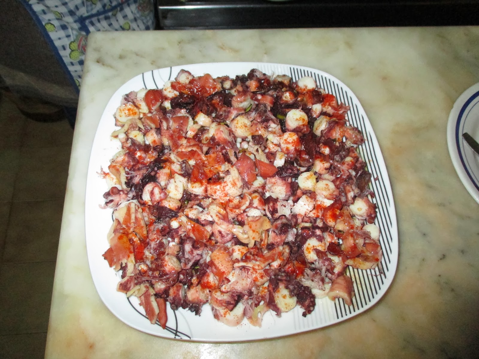 Isto está assim um pouco ao contrário mas enfim esta sou eu! Ontem mostrei o almoço de Natal, hoje mostro a noite anterior... A ceia de Natal foi composta por polvo à feira para entrada. Ficamos a conhecer o polvo à feira aqui e a minha mãe resolveu experimentar a fazer para entrada. Ficou muito bom!