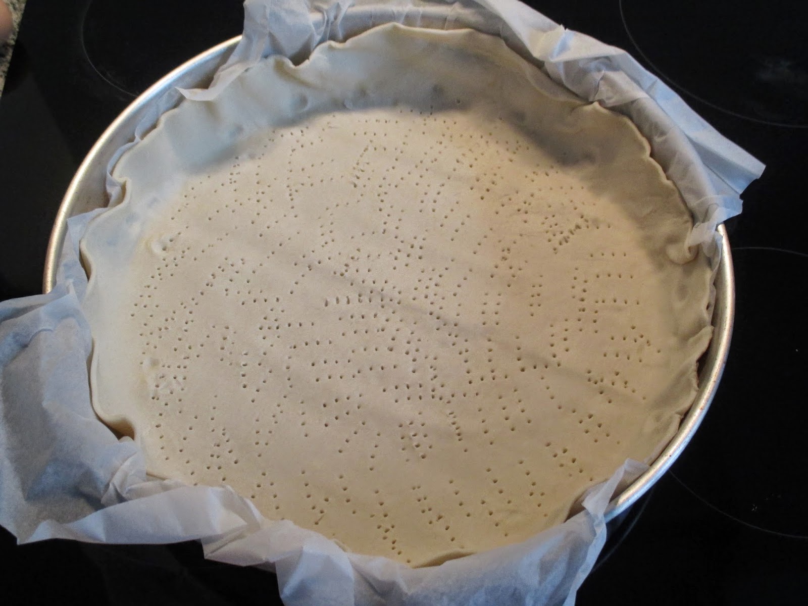 A receita é simples e no meu caso ainda foi mais simples pois comprei a massa já feita, assim foi só espalhar a massa na forma e picar com um garfo (se não empola e rebenta).