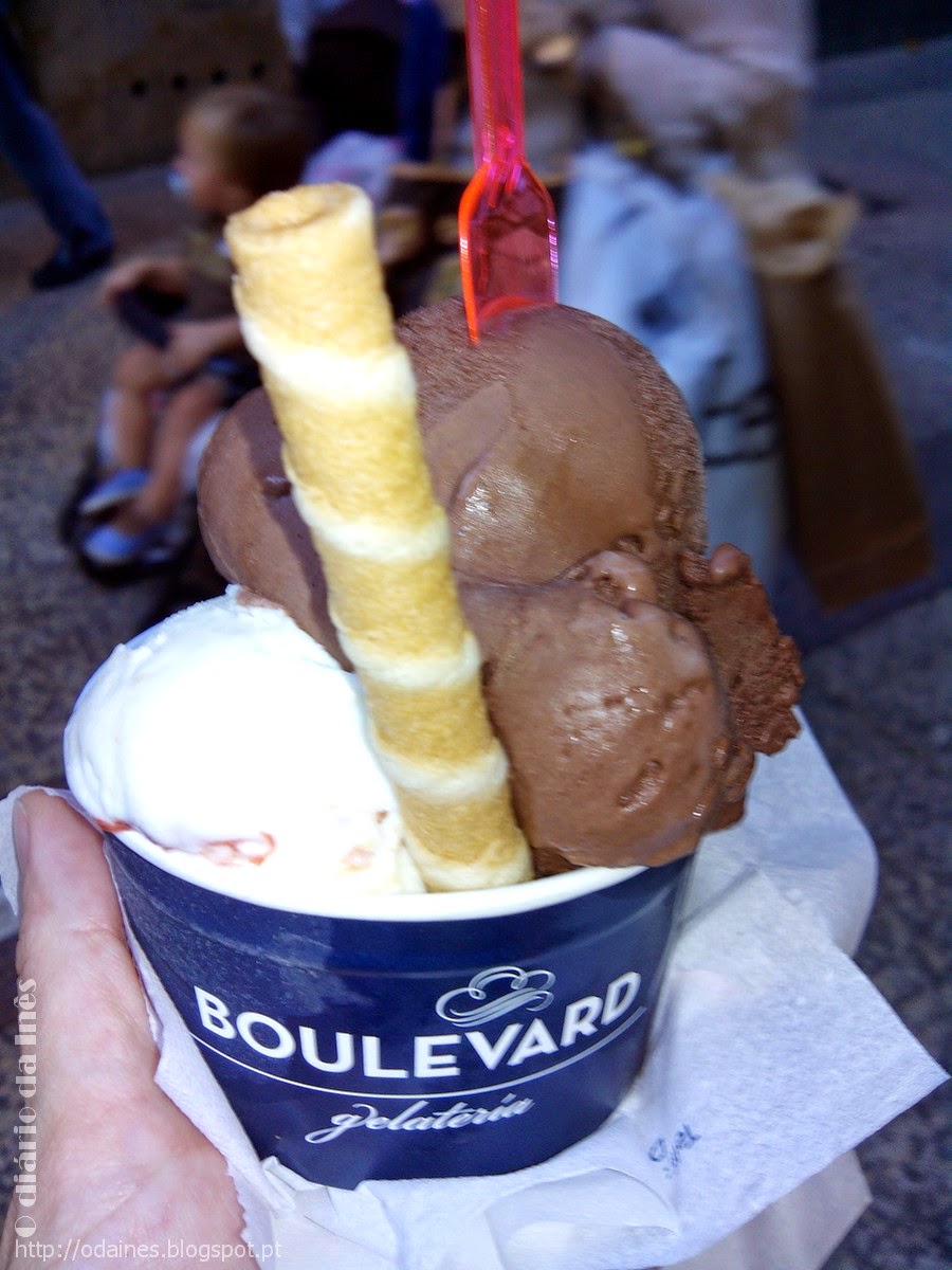 Depois também comi um gelado enorme, 2 sabores em cone 2€ e em copo 2.80€. Comi chocolate e laranja que era divinal e cheesecake que era bom mas não chegava aos calcanhares do de chocolate e laranja. Achei o preço muito barato para a quantidade de gelado e se formos comparar com os preços dos pintxos o gelado era praticamente oferecido!