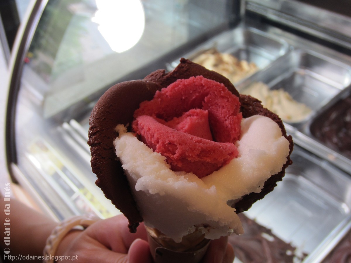 Mas o que poderia ser melhor para o lanche de um dia de calor do que um belo gelado? Ainda por cima estávamos perto desta gelataria quando a barriga começou a dar horas.