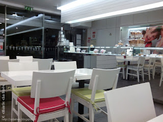 Sempre que vou a esta gelataria é já próximo da hora de fechar e por isso encontro sempre o espaço vazio, o que é bom pois permite-me sentar nos bancos com baloiço!