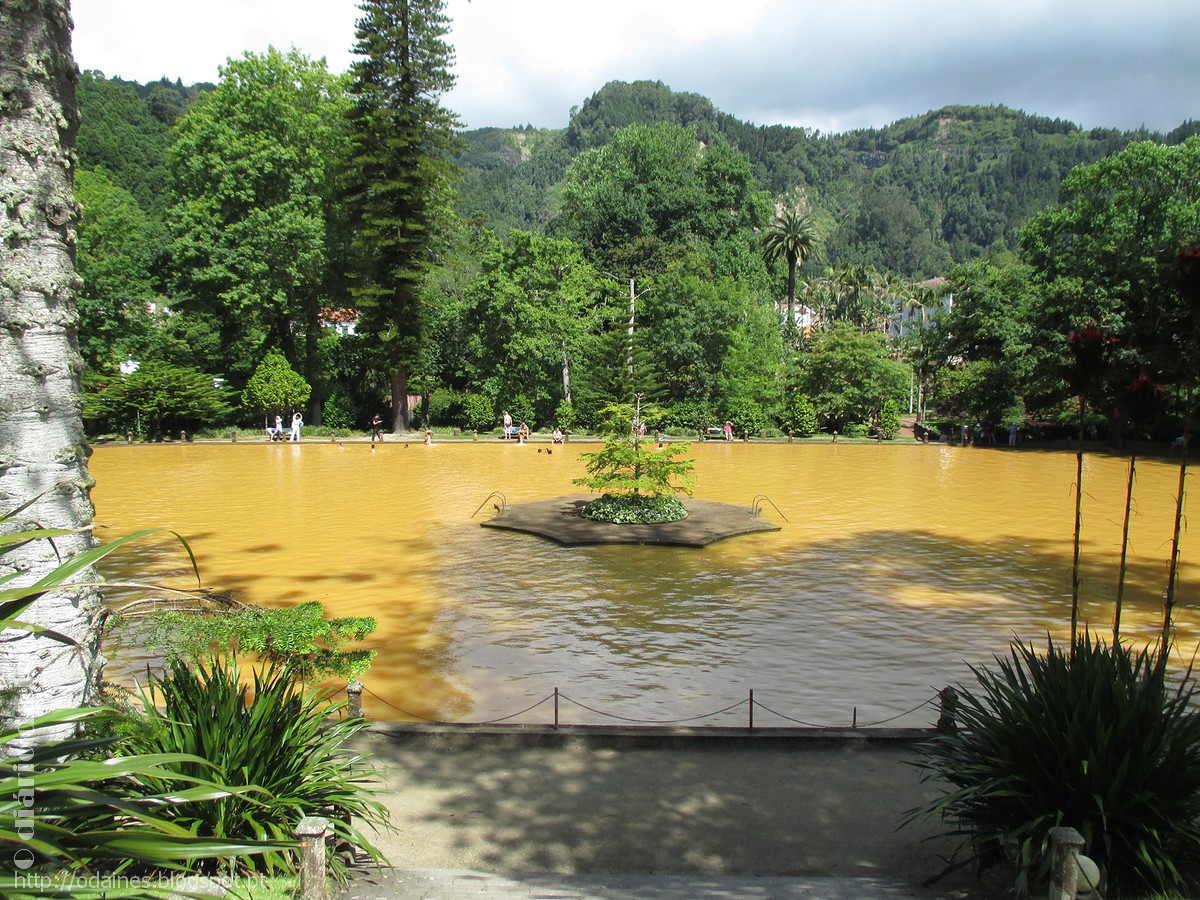 Fui ao Parque Terra Nostra tomar banho na água ferrosa, na esperança de sair de lá ainda mais jovem! :) Aquela água, ultrapassando o cheiro é mesmo maravilhosa, super quentinha, queria eu tomar banho assim sempre em águas quentinhas. O pior depois é tirar o ferro e o respectivo cheiro do corpo e roupa. Mau, mau é depois daquela água quentinha os chuveiros para tomar banho serem de água fria!