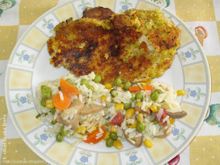 Comidas da mamã - Bife à Milanesa com arroz primavera