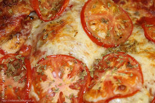 Cobrir o fundo de um tabuleiro de ir ao forno com polpa de tomate. Por cima dispor uma camada de finas rodelas de tomate. Depois colocar o frango, cobrir com polpa de tomate, o queijo e uma camada de rodelas de tomate. Temperar com óregãos e levar ao forno para que a carne acabe de cozinhar e até que a parte superior fique dourada.