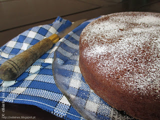 Levar o bolo ao forno a 180º, numa forma previamente barrada com manteiga e peneirada com farinha, e deixar cozer até ao espetar um palito no bolo ele vir seco.