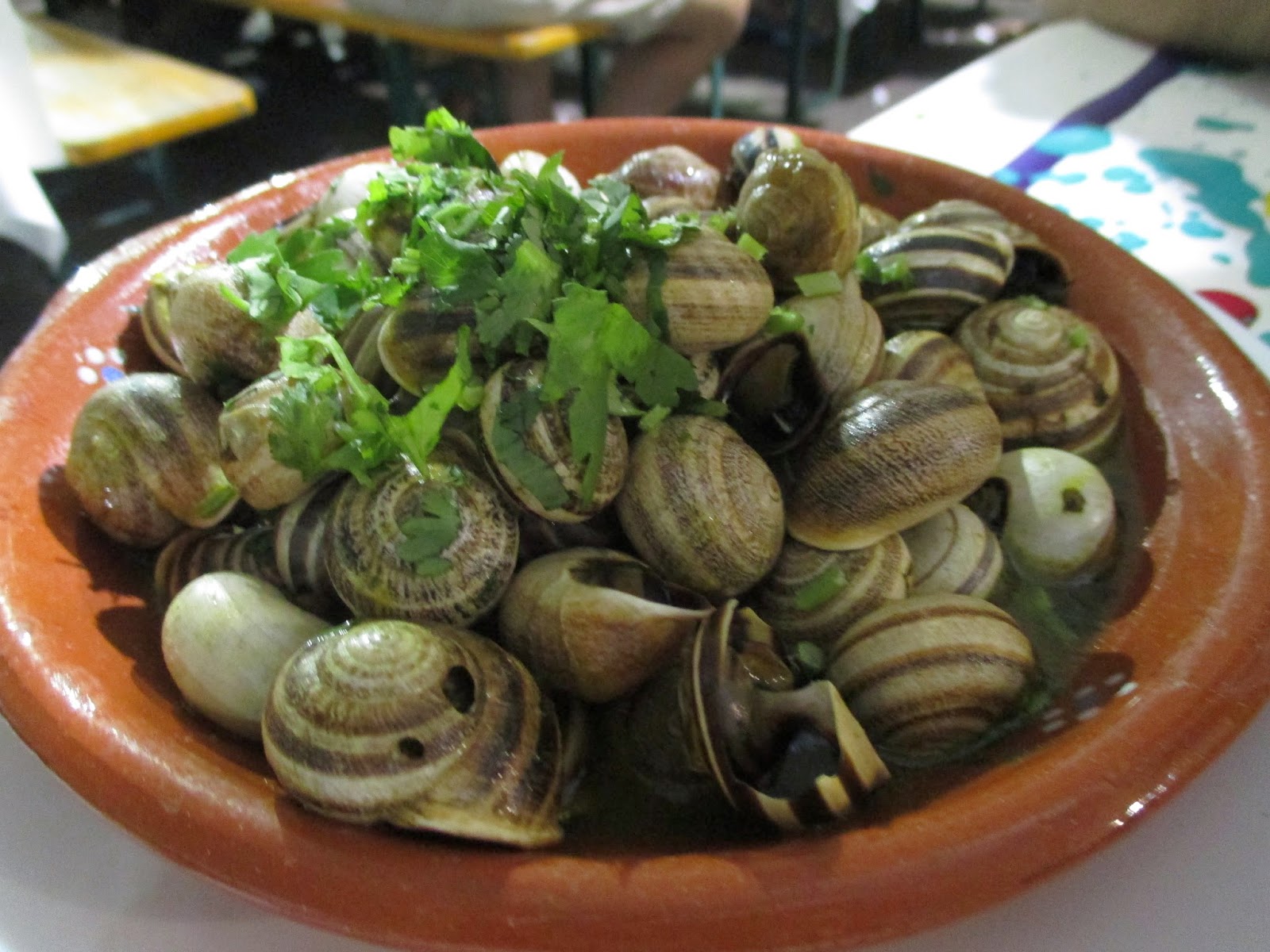 Por esta travessa de caracóis, dois pães torrados com manteiga, uma imperial e uma 7up pagámos cerca de 8€. Assim, se há cá por cima pessoas desesperadas por comer caracóis esta é uma opção!