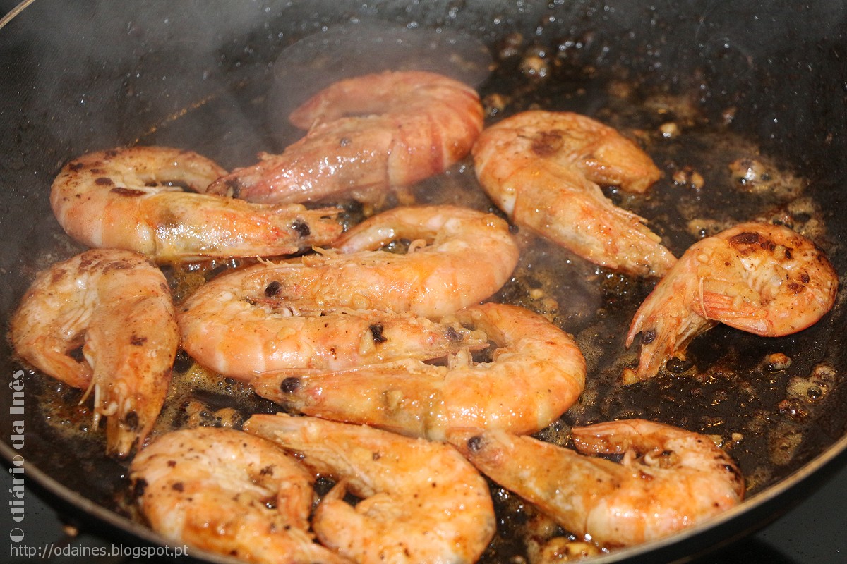 Temperar o camarão com limão, alho, sal, pimenta e picante e fritar numa mistura de manteiga e azeite, usando também o molho onde os camarões foram temperados. Quando o camarão ficar alaranjado desligar o lume.